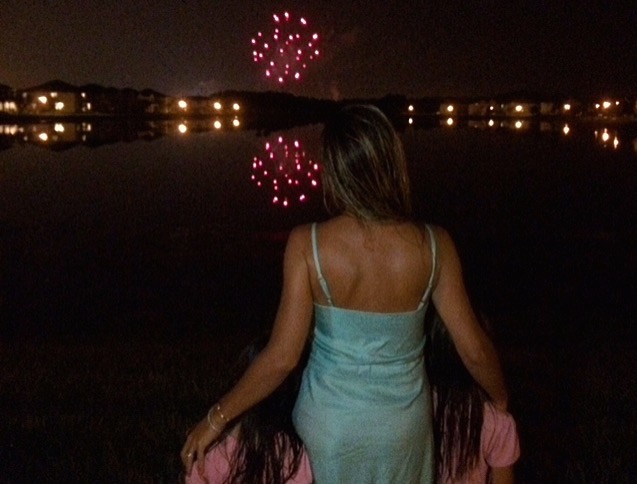 A foto acima, que fez o maior sucesso no meu instagram (@pat_maldonado) e Facebook, foi tirada pela minha amiga Vivi no quintal de casa. Tínhamos acabado de tomar banho e as meninas estavam indo pra cama depois de um dia cansativo (na verdade elas estavam indo dormir mais tarde porque hoje é feriado por aqui, normalmente elas dormem as 20h30). Antes de descansar, no entanto, decidimos ir ver os fogos de casa mesmo.