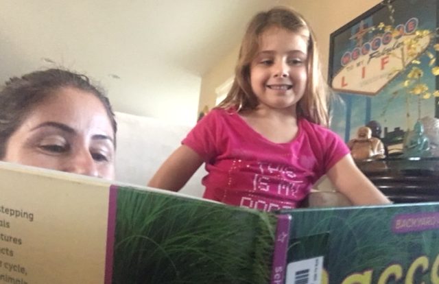 Sempre que estou mais folgada (amaria dizer que faço isso todo dia, mas estaria mentindo) eu leio para minhas filhas, como já contei aqui. Pode ser quando chegam da escola com um livro novo. Quando vou ao shopping e acho algo que é a cara delas. Ou quando encontro em algum deles uma mensagem que quero passar, sendo contada do jeitinho que elas entendem perfeitamente. Por exemplo, ainda no Brasil eu comprei um livro chamado “Vai embora grande monstro verde”, para ajudar no medo que elas sentiam de monstros durante as madrugadas (sabe aqueles pesadelos sem pé nem cabeça?). Pois bem, deu certo! Eles sumiram!